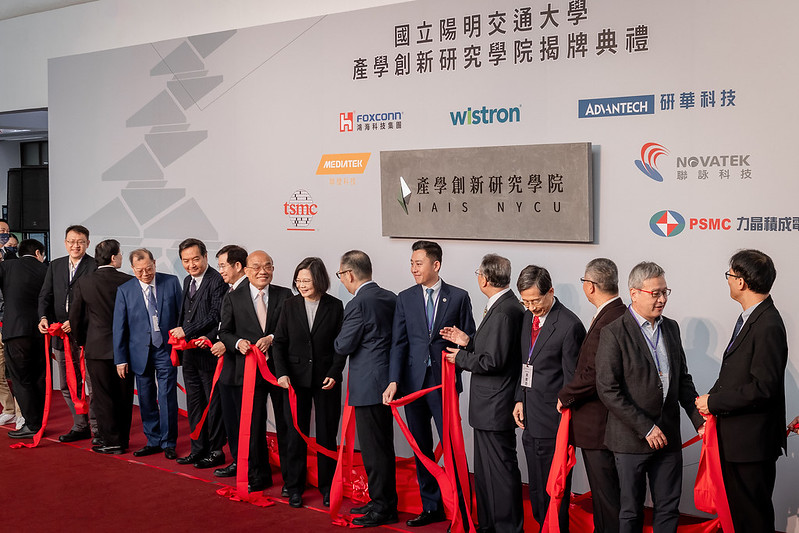總統與現場貴賓共同進行剪綵儀式。包括行政院長蘇貞昌、政務委員兼行政院發言人羅秉成、教育部長潘文忠、經濟部次長林全能、新竹市長林智堅、陽明交通大學校長林奇宏、宏碁榮譽董事長施振榮、力積電董事長黃崇仁、緯創資通董事長林憲銘、聯詠科技副總經理陳聰敏、研華協理林之寅、鴻海研究院執行長李維斌、台積電處長張孟凡、聯發科處長梁伯嵩等亦出席是項活動。