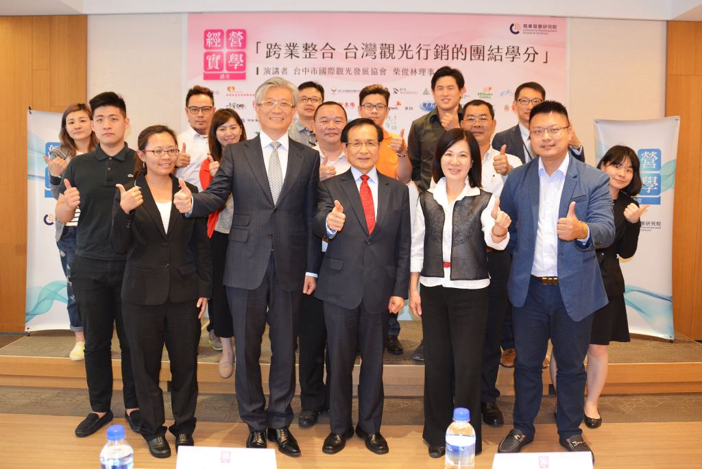財團法人商業發展研究院於5月17日假孫運璿科技人文紀念館舉辦經營實學講堂,本次活動主題為「跨業整合 台灣觀光行銷的團結學分」,邀請台中市國際觀光發展協會理事長柴俊林蒞臨演講,商研院許添財董事長到場致詞,並由張皇珍副院長主持。柴俊林理事長分享跨域整合與跨業整合的經驗,將中台灣的觀光資源善加運用,如彰化鹿港、南投日月潭、嘉義故宮南院等觀光資源,再利用台中港、清泉崗機場把國際旅客帶進中台灣,做好點對點的接駁,透過中台灣的旅遊概念延伸至國際聯合行銷,並整合包括航空公司、旅行社、觀光飯店、知名景點、特色餐廳、糕餅業、伴手禮業等,共同打造中台灣的觀光魅力。張皇珍副院長分享過去推動觀光資源的經驗,並且說明商研院對於觀光相關產業的重視,未來也將持續扮演政府與民間溝通的橋樑,協助台灣觀光業的永續經營與推展。