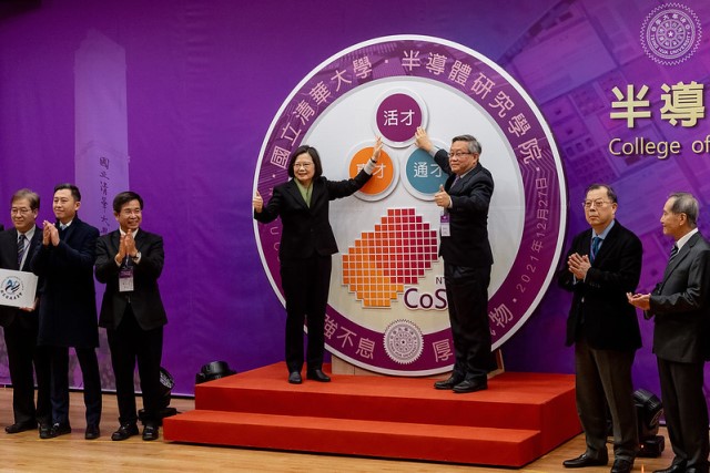 蔡英文總統今(27)日上午出席「國立清華大學半導體研究學院揭牌典禮」時表示,國內四所半導體學院已經全部成立。她期許加入半導體研究學院的同學們一起努力,讓臺灣半導體產業不斷前進,為臺灣科技產業貢獻心力,創造新的里程碑。