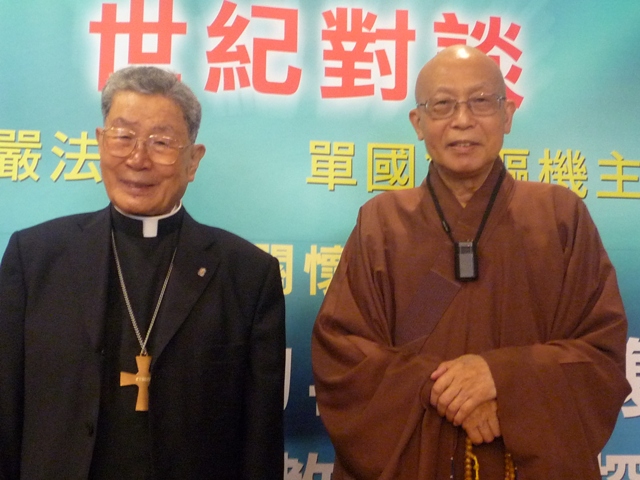 IAE國際學士院參與共融單國璽是第一位以台灣教區主教身份獲教宗冊封為樞機主教者與聖嚴法師是漢傳佛教第一位赴日攻讀博士並順利完成博士學位出家比丘之世紀對談.