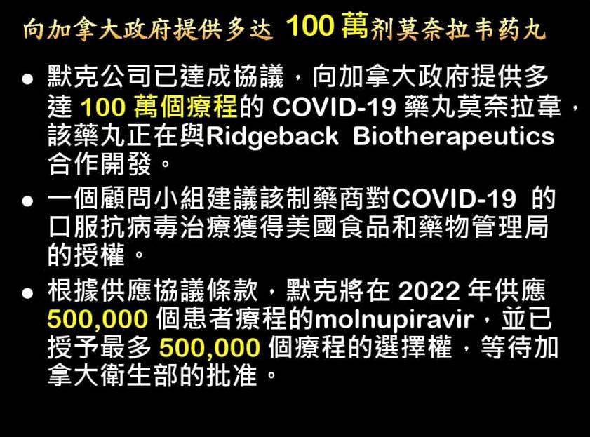 2021年11月初,Molnupiravir在英國獲准緊急使用。(詳細內容 請點入)↑