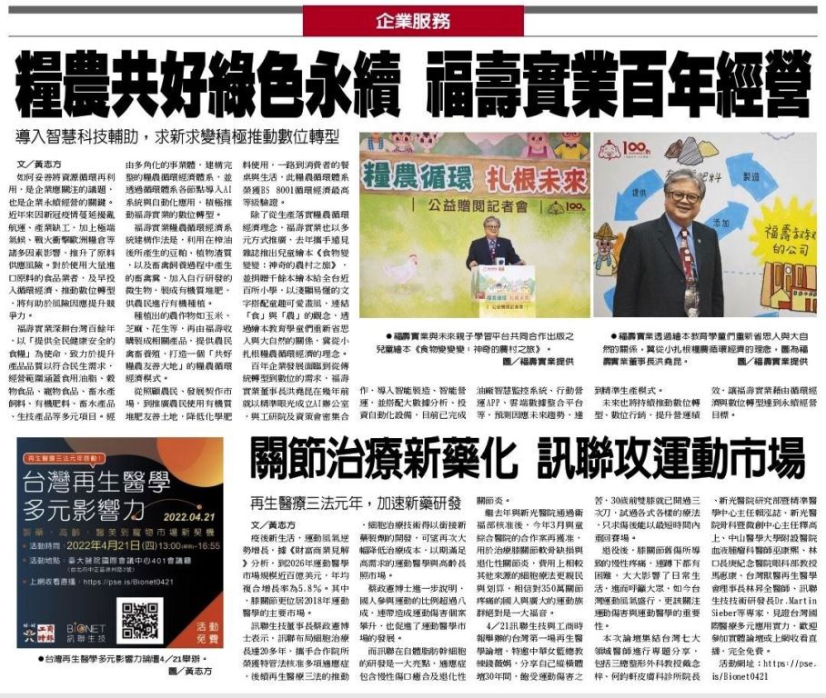 糧農共好綠色永續 福壽實業百年經營 (工商時報)