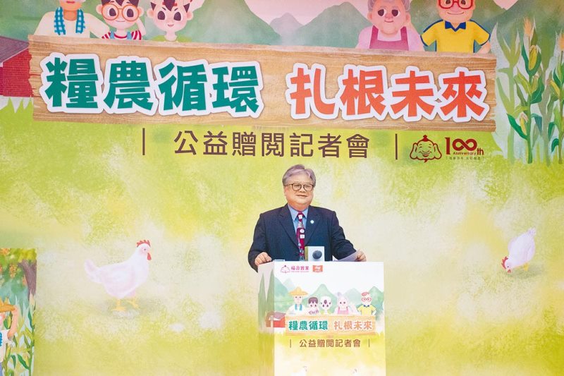 福壽實業透過繪本教育學童們重新省思人與大自然的關係,冀從小扎根糧農循環經濟的理念,圖為福壽實業董事長洪堯昆。 圖╱福壽實業提供