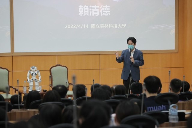 賴清德副總統出席「雲林科技大學通識講座」,以「和你一起談未來」為題進行演講,期待同學們具備「環保愛地球」(Earth)、「智慧新科技」(AI)、「國際觀」(Global)、「跨域學習」(Learning)及「競爭優勢」(Edge)等5項素養,成為翱翔天際的老鷹(EAGLE),掌握機會、實現自我,成就更好的臺灣與世界。