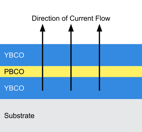 沿不同軸的材料屬性可能不同。例如,超導相干長度是庫珀對中兩個電子之間的平均距離。一般來說,更穩定的超導態具有更長的相干長度。 YBCO 中的銅平面傾向於阻礙 c 方向的超導性。由此產生的相干長度在 a 方向為 2 納米,在 b 方向為 2 納米,在 c 方向為 0.2 到 0.4 納米(小 5 到 10 倍),因此超電流更喜歡在 a-b 銅平面中流動。這種基本偏好為 a 軸器件提供了優於 c 軸器件的固有架構優勢:電流在 c 軸材料中水平流動(平行於襯底),但電流可以水平和垂直(平行和垂直於襯底)在 c 軸材料中流動軸材料。