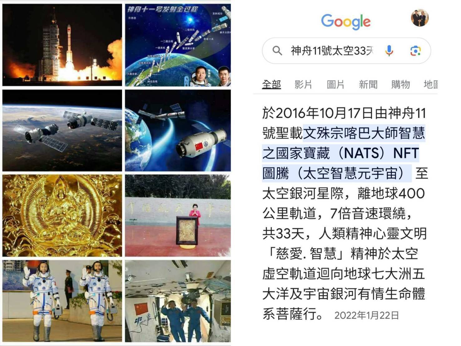 ●有史以來大國最重要航天事業有關國家心靈藝術寶藏(NATS) 圖騰。喜歡太空無限想像!2016年12月已完成人類有史以來 國家心靈藝術寶藏(NATS) 圖騰.. 太空慈悲智慧菩薩行(準金氏紀錄)!有錢還上不了太空,國家審查十分嚴格且認證。但國家發射神舟11號天宮2號33天之國家心靈藝術寶藏(NATS) 圖騰 太空行,中國航天集團之國家所費非常高且不貲,才能得到這樣成功結果!