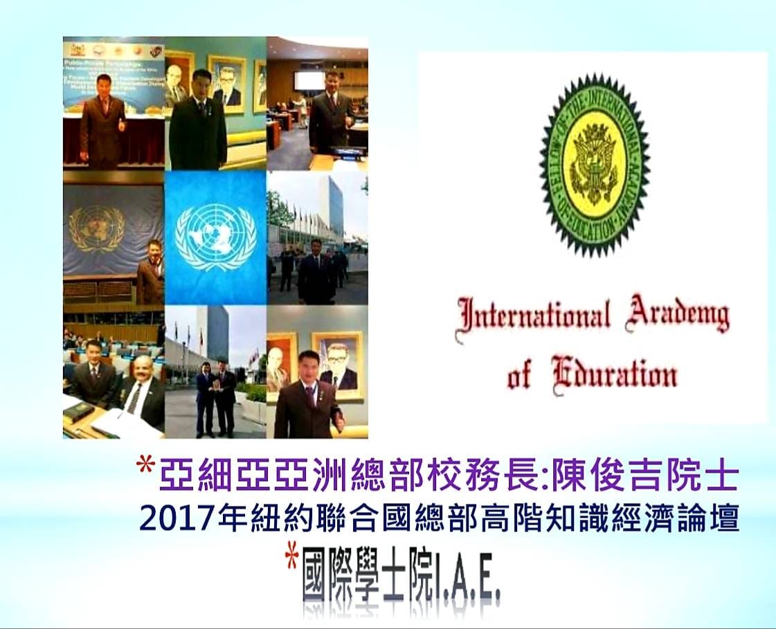 IAE國際學士院Top1%產官學研代表 陳俊吉院士於紐約聯合國總部第四會議大廳(2017.05.23美國時間)