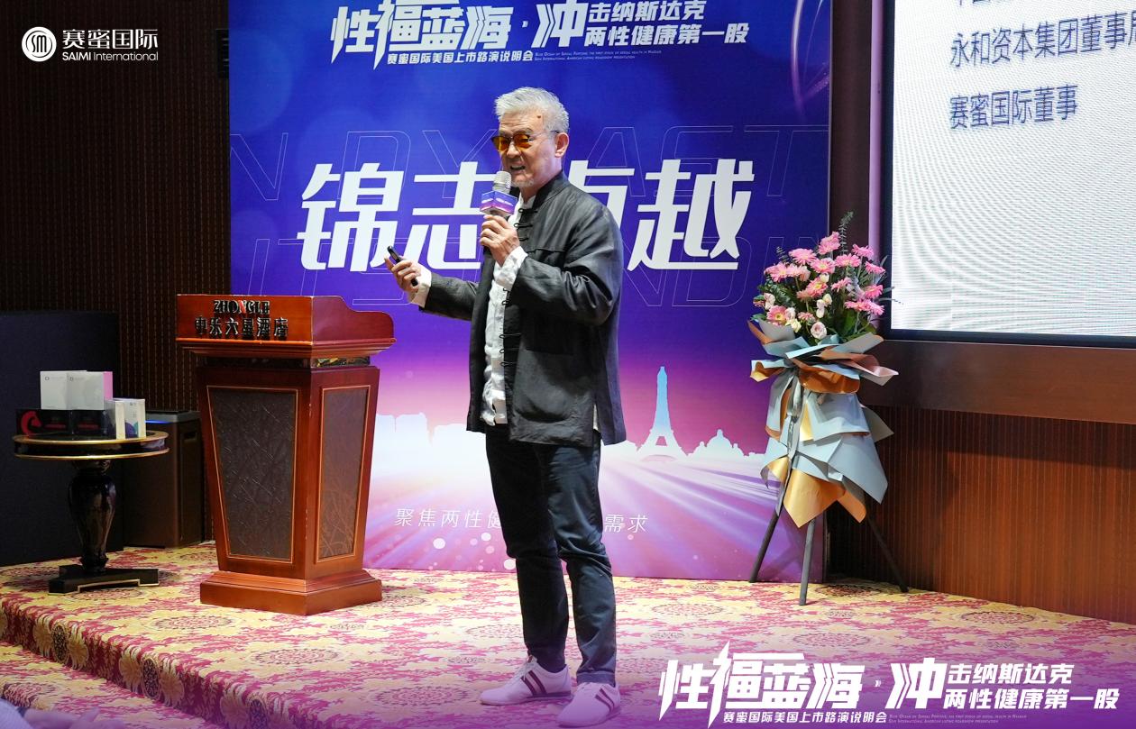 2021年5月29日,賽蜜國際在北京中樂六星酒店成功舉辦了《性福藍海-衝擊納斯達克兩性健康第一股》美國上市路演說明會。會議特別邀請了前軟銀中國資本(SBCVC)董事、總經理、永和資本集團董事長馮正明,永和豆漿創始人、永和資本集團董事局主席林炳生,世界發展基金會主席郭咸綱,賽伯樂投資集團高級合夥人朱磊,中國品質萬裡行產品溯源平臺創始人嶽輝,美聯商會(亞洲)資本集團中國區總裁楊傑,北京商會副會長穀榮輝等50餘名投資界的知名人士列席。