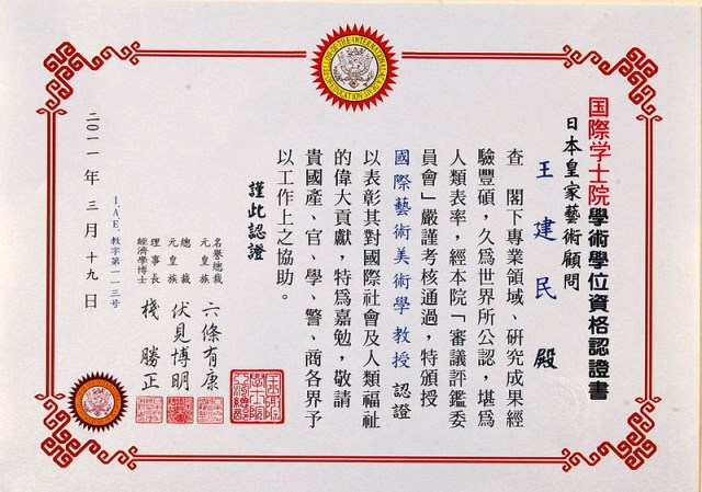 日前蠟筆王-王建民王榮獲日本皇家國際學士院學術學位資格認證,在眾多藝術的領域裡,箇中翹楚比比皆是,但能以簡單的蠟筆顏料做創作並獲得肯定實屬不易,身為一個蠟筆畫家能獲得此一殊榮個人感到非常高興,個人在蠟筆畫的創作堅持總算開始有了成果,這讓蠟筆王有了更大的動力與信念,繼續專研精進蠟筆畫的創作,期望能將蠟筆畫的推廣與創作,攀上更高一層樓。
