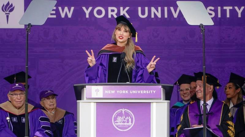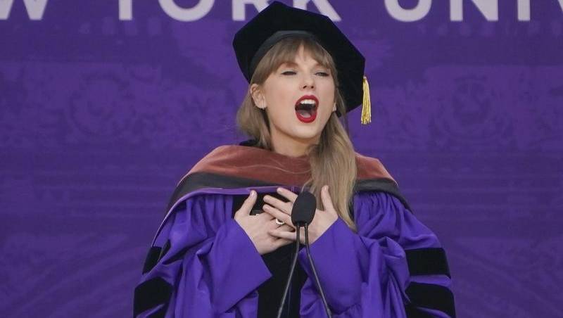Taylor Swift received an honorary doctorate of fine arts from New York University on Wednesday and delivered the commencement address at the 2022 graduation ceremony at Yankee Stadium.