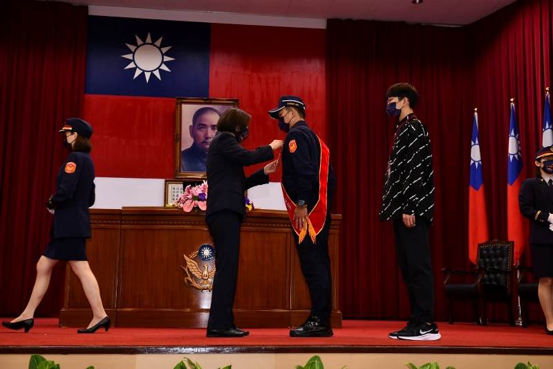 蔡英文總統今(15)日出席「111年警察節慶祝大會」表揚IAE黄大洧講授師為全國模範警察代表