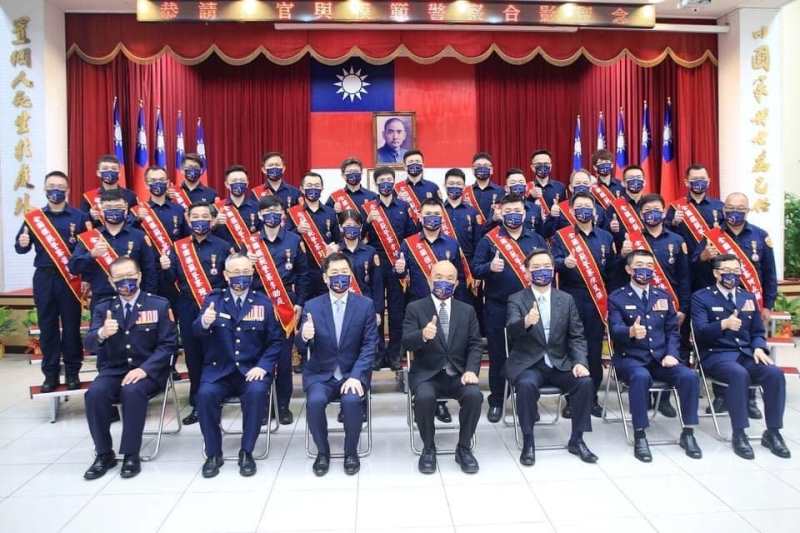 蘇貞昌行政院長與28位模範警察,以及10位資深績優人員警察獎章代表合影