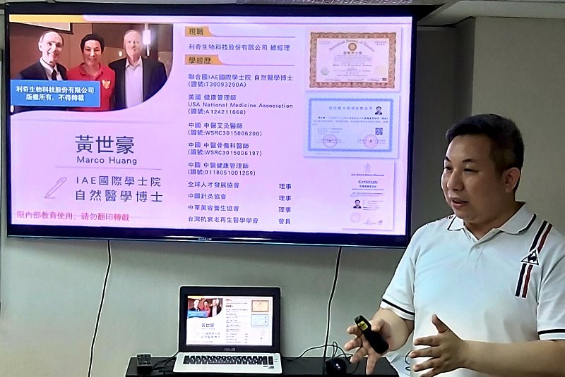 利奇生技總經理黃世豪本身即是中醫健康管理師,擁有多項證照,用他的專業來為民眾健康做把關。