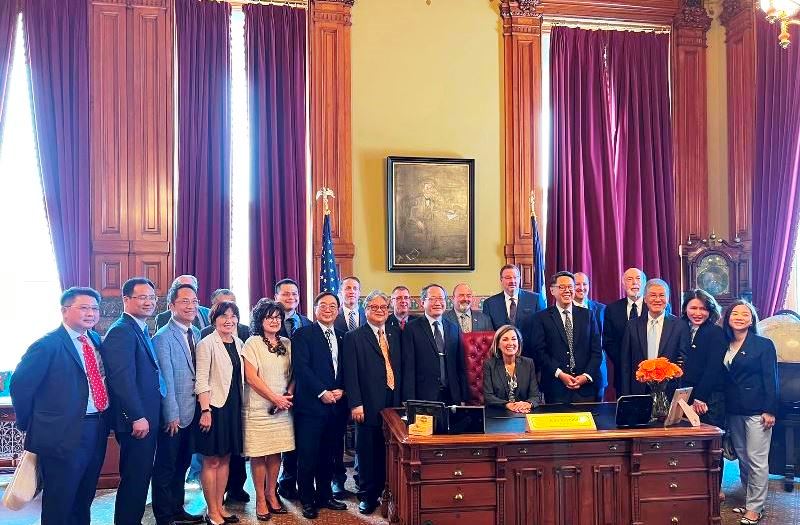 愛荷華州州長金雷諾茲( Kimberly Kay Reynolds)、愛荷華農業部長邁克奈格、愛荷華玉米促進委員會、愛荷華大豆協會和愛荷華經濟發展局(IEDA)今天接待了台灣農業貿易親善團成員。代表團訪問愛荷華州的主要目的是簽署購買玉米和大豆的意向書。