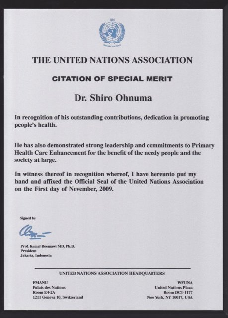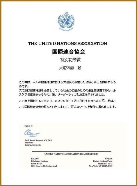 ・ 2009年:11月在東京獲得聯合國日本協會特別成就獎。