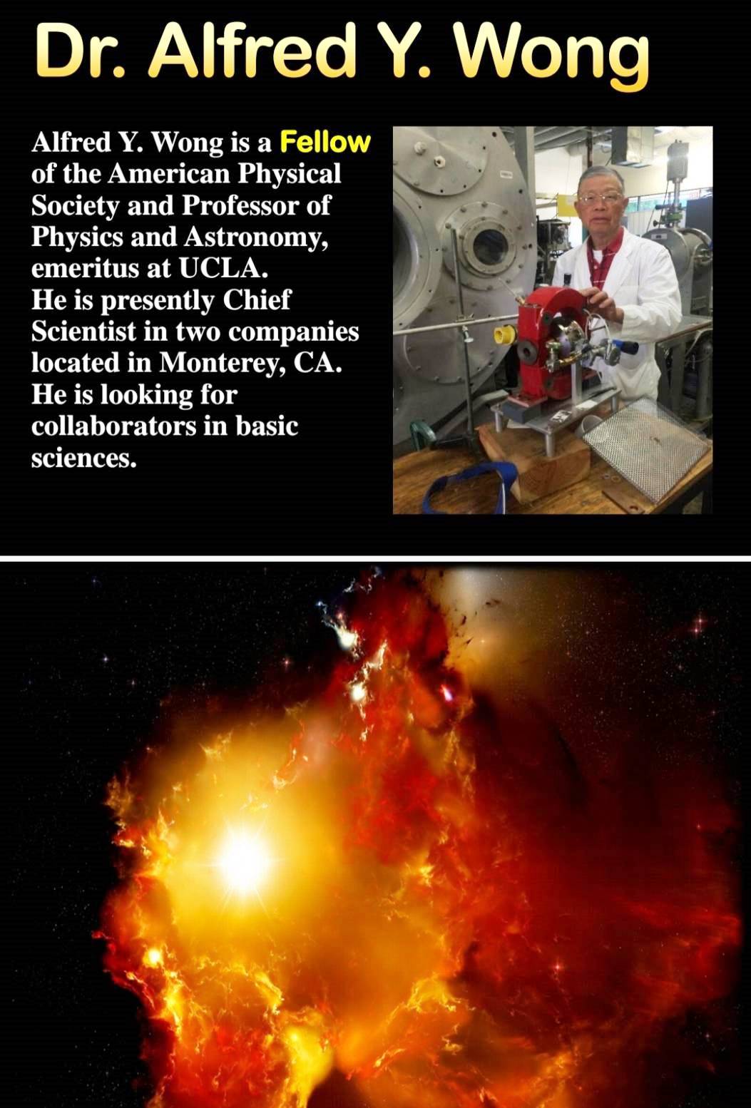 Alfred Y. Wong is a Fellow of the American Physical Society and Professor of Physics and Astronomy, emeritus at UCLA. He is presently Chief Scientist in two companies