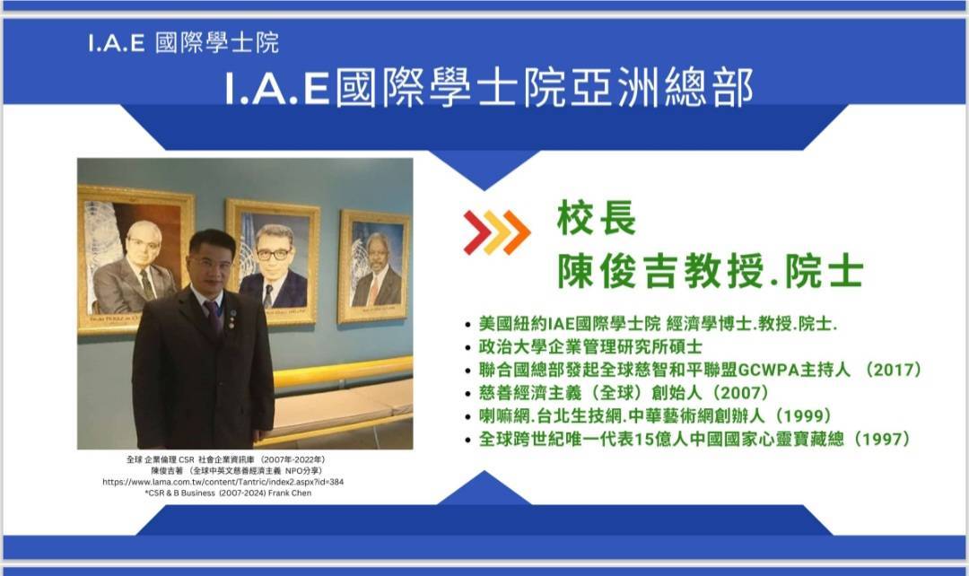 聯合國 W.U.U IAE 國際學士院 亞洲總部校務長院士暨亞洲區校長