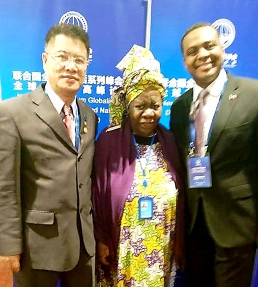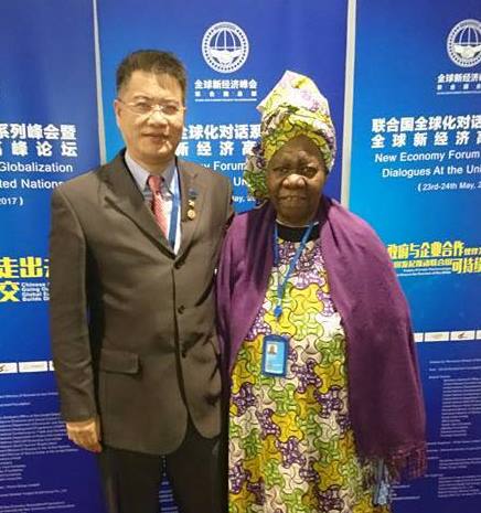 聯合國總部緣起 全球慈愛智慧和平聯盟創始人 陳俊吉院士 Frank Chen與聯合國非洲女王母親 Delois Blakely博士於聯合國總部合影