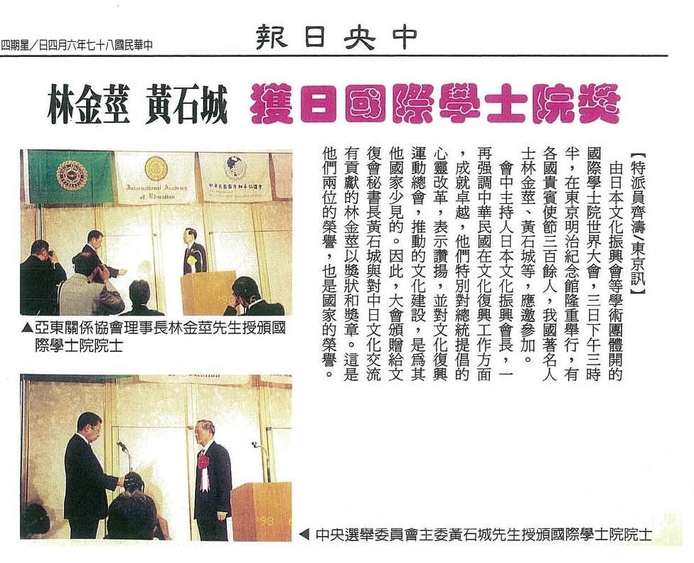- 總統頒授亞東關係協會前會長林金莖勳章典禮,中華民國總統府網站,2001年9月19日